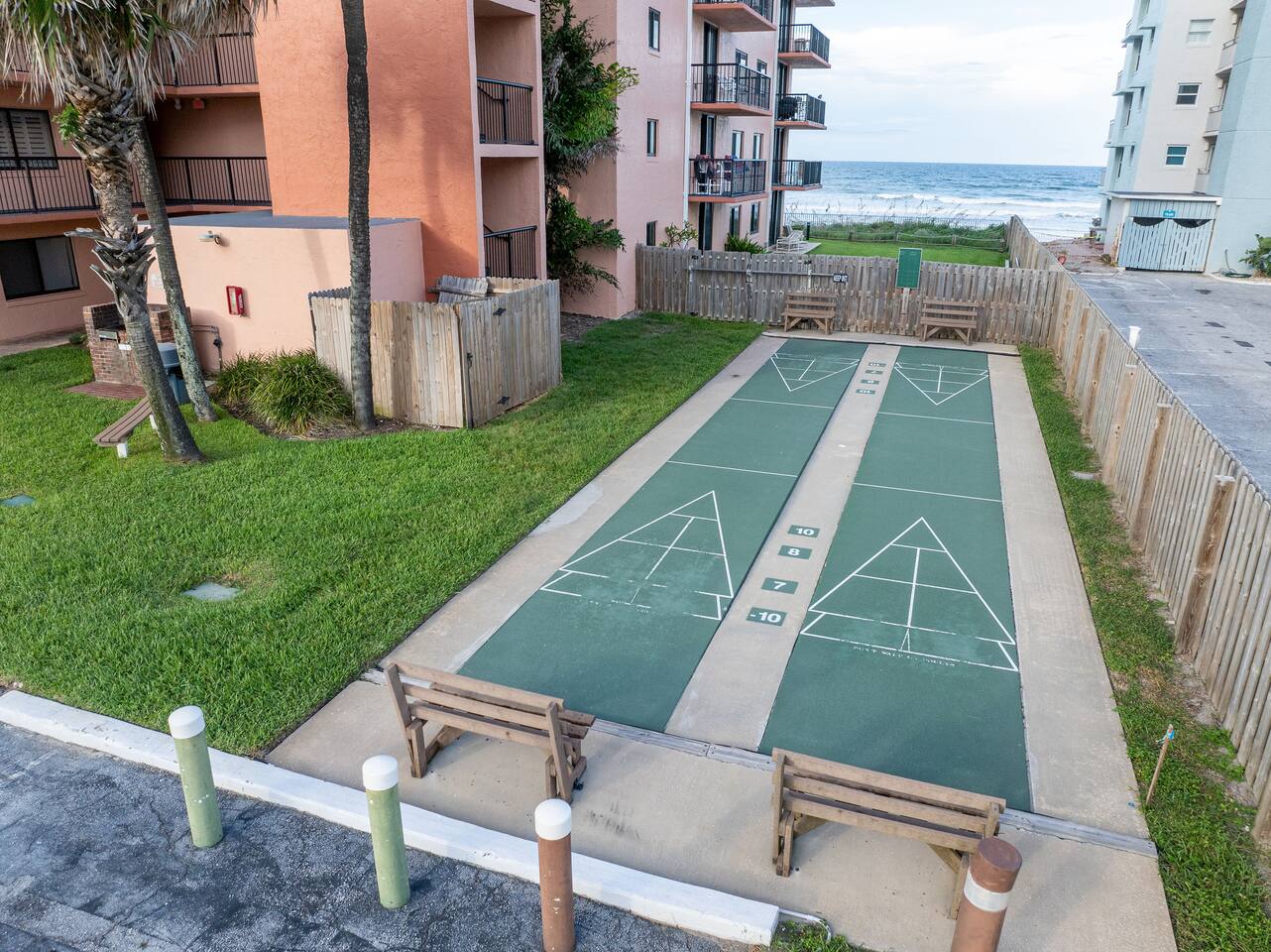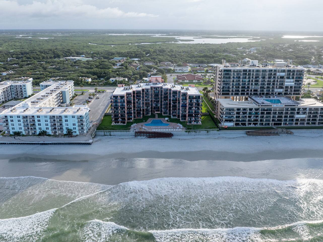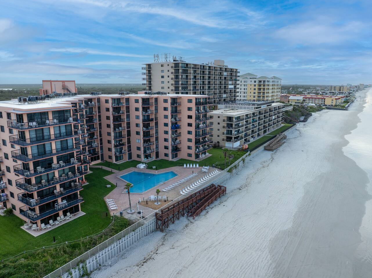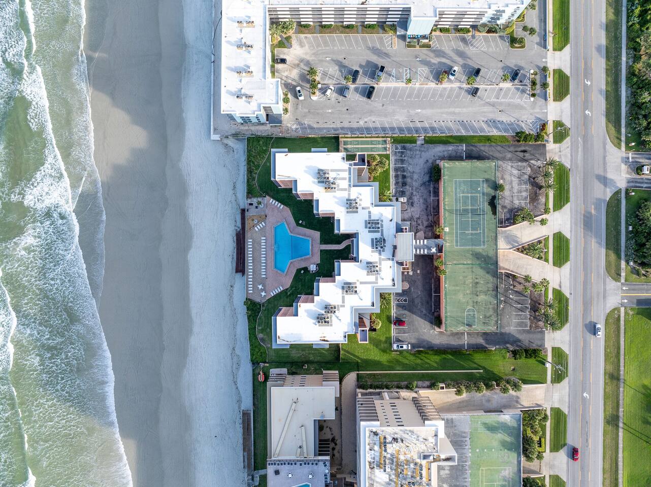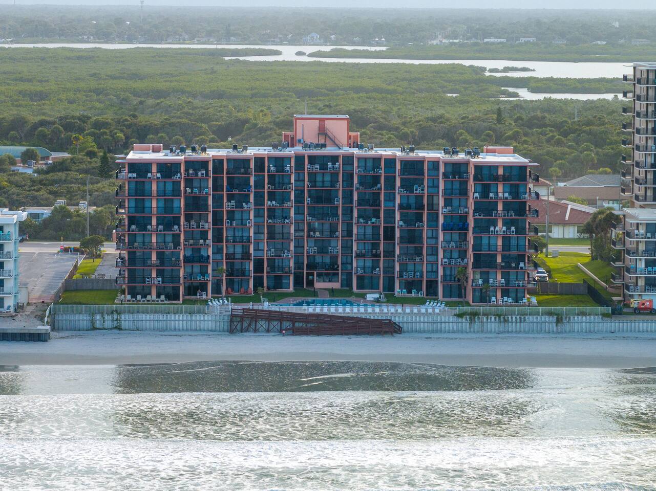 The Space Welcome to your oceanfront escape in New Smyrna Beach — where every day begins with sunrise views over the Atlantic and ends with the sound of gentle waves. Thoughtfully updated, this 2-bedroom, 2-bath condo offers modern comfort in a relaxed coastal setting ideal for families, couples, or small groups. 🌊 Main Living Area ⭐ Open-concept layout with panoramic ocean views ⭐ Plush sofa and Smart TV for cozy movie nights ⭐ Sliding glass doors open to the private beachfront balcony ⭐ Dining area perfect for shared meals or board games 🍳 Kitchen ⭐ Fully equipped with cookware, utensils, and full-size appliances ⭐ Coffee maker, blender, and dishwasher for easy cleanup ⭐ Breakfast bar with ocean views for casual dining 🛏 Primary Bedroom ⭐ King bed with premium linens and ocean views ⭐ Direct balcony access for morning coffee or sunset views 🛏 Primary Bedroom ⭐ King bed with premium linens and ocean views ⭐ Direct balcony access for morning coffee or sunset views ⭐ Ensuite bathroom with walk-in shower and upgraded fixtures ⭐ Smart TV and ample closet storage 🛏 Guest Bedroom ⭐ Full bed plus twin bed — ideal for families or friends ⭐ Smart TV and generous storage space ⭐ Easy access to a full bathroom with grab bars for added safety 🛁 Bathrooms ⭐ Two full bathrooms with fresh towels and toiletries ⭐ Walk-in shower in the master bath ⭐ Hair dryer and starter bath essentials provided 💻 Work & Connectivity ⭐ High-speed WiFi (350+ Mbps) for remote work or streaming ⭐ Dedicated workspace with inspiring ocean backdrop ☀️ Outdoor Space ⭐ Private oceanfront balcony with comfortable seating ⭐ Shared swimming pool and sun loungers ⭐ Direct beach access from the property ⭐ Outdoor grill and picnic area ⭐ Pickleball and tennis courts on-site 🧺 Convenience ⭐ Smart lock entry for seamless check-in ⭐ Free on-site parking ⭐ Washer/dryer in unit ⭐ Beach gear, toys, and chairs provided 📍 Location ⭐ Prime oceanfront spot on New Smyrna Beach ⭐ Minutes to Flagler Avenue’s restaurants, shops, and cafe. ⭐ Close to surf spots, parks, and the Intracoastal Waterway