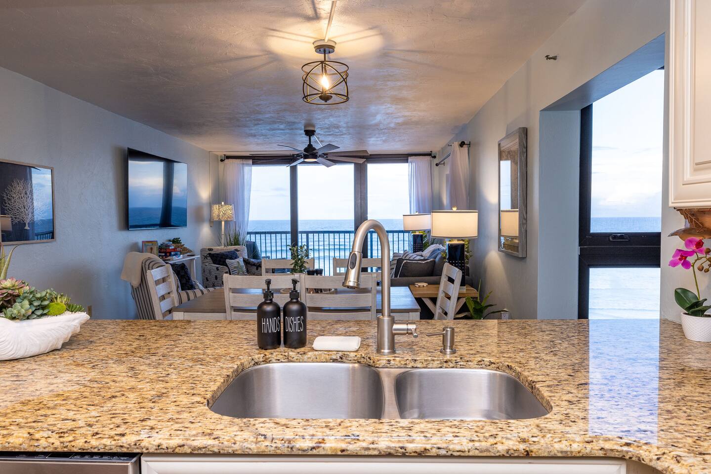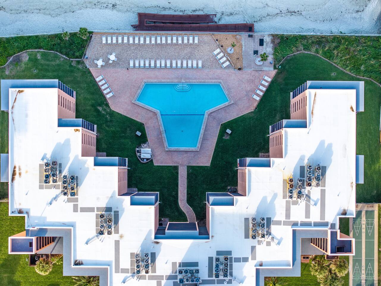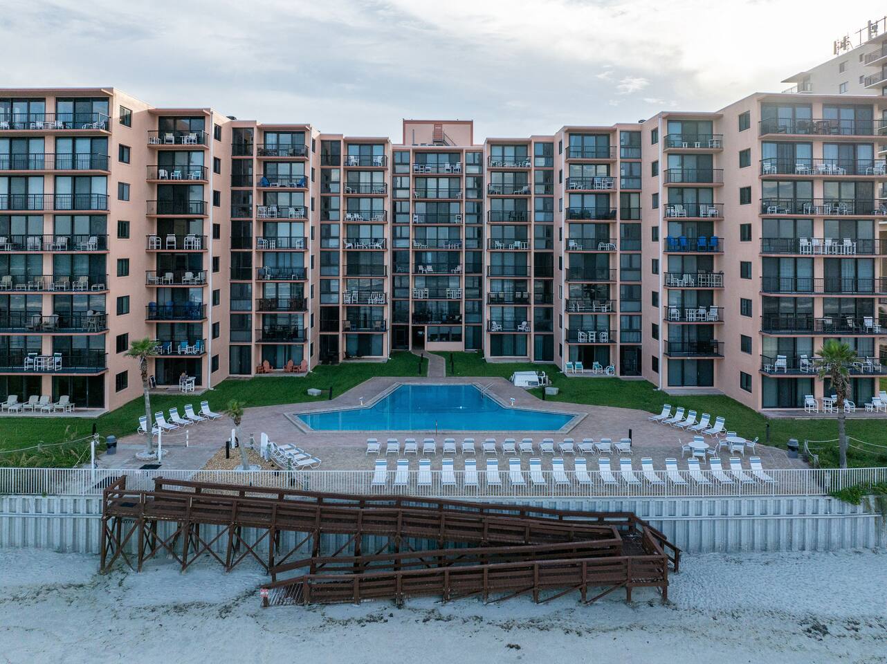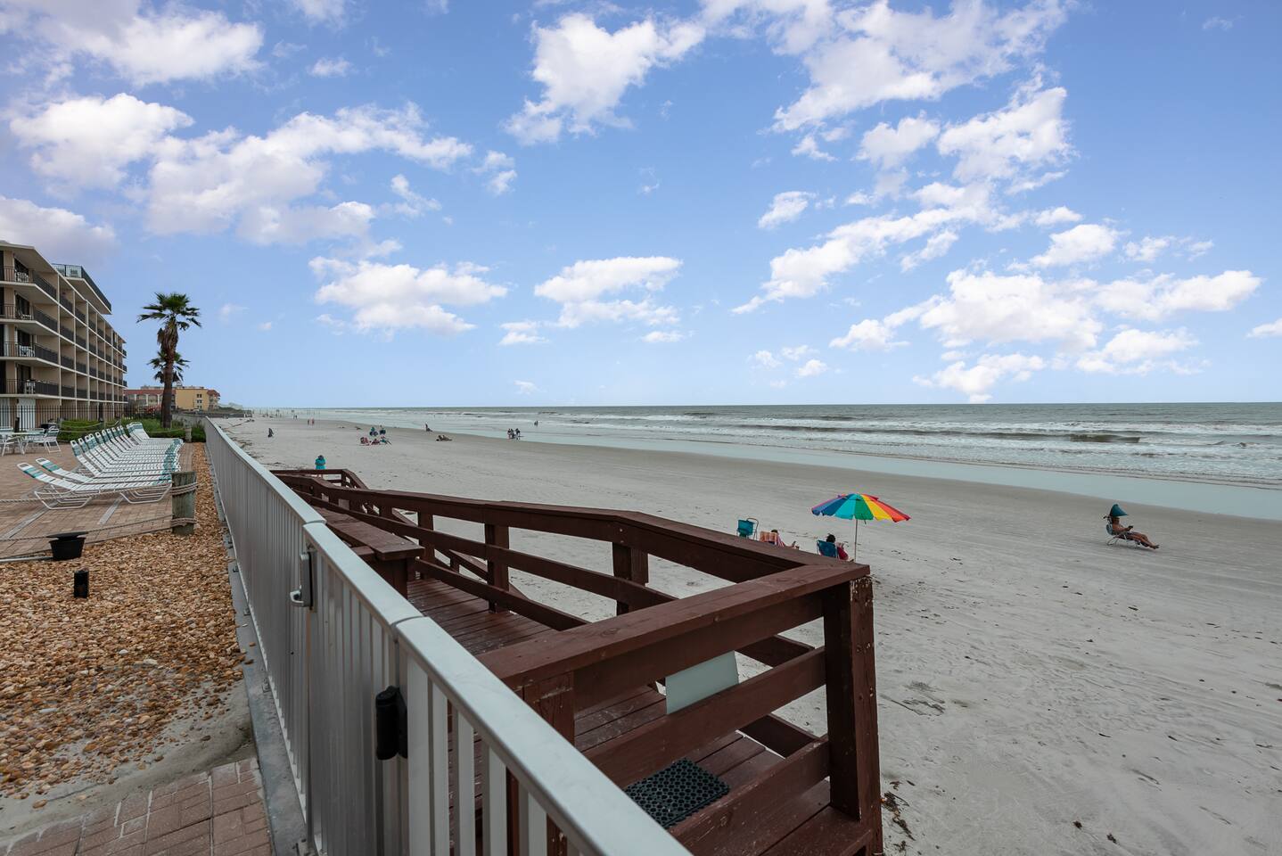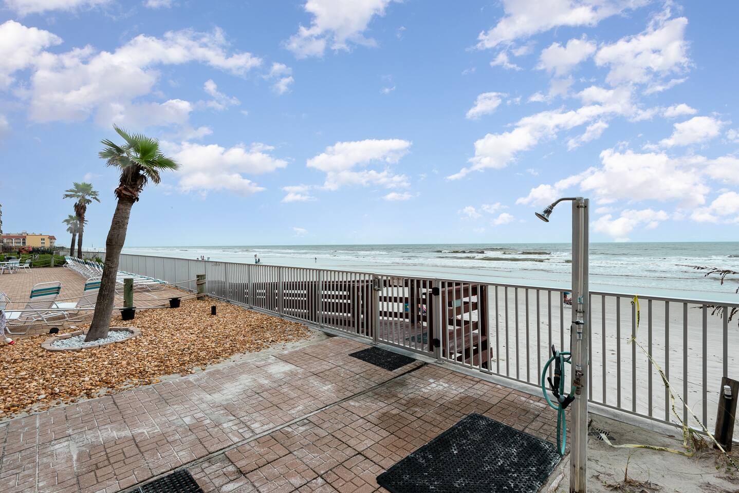 The Space Welcome to your oceanfront escape in New Smyrna Beach — where every day begins with sunrise views over the Atlantic and ends with the sound of gentle waves. Thoughtfully updated, this 2-bedroom, 2-bath condo offers modern comfort in a relaxed coastal setting ideal for families, couples, or small groups. 🌊 Main Living Area ⭐ Open-concept layout with panoramic ocean views ⭐ Plush sofa and Smart TV for cozy movie nights ⭐ Sliding glass doors open to the private beachfront balcony ⭐ Dining area perfect for shared meals or board games 🍳 Kitchen ⭐ Fully equipped with cookware, utensils, and full-size appliances ⭐ Coffee maker, blender, and dishwasher for easy cleanup ⭐ Breakfast bar with ocean views for casual dining 🛏 Primary Bedroom ⭐ King bed with premium linens and ocean views ⭐ Direct balcony access for morning coffee or sunset views 🛏 Primary Bedroom ⭐ King bed with premium linens and ocean views ⭐ Direct balcony access for morning coffee or sunset views ⭐ Ensuite bathroom with walk-in shower and upgraded fixtures ⭐ Smart TV and ample closet storage 🛏 Guest Bedroom ⭐ Full bed plus twin bed — ideal for families or friends ⭐ Smart TV and generous storage space ⭐ Easy access to a full bathroom with grab bars for added safety 🛁 Bathrooms ⭐ Two full bathrooms with fresh towels and toiletries ⭐ Walk-in shower in the master bath ⭐ Hair dryer and starter bath essentials provided 💻 Work & Connectivity ⭐ High-speed WiFi (350+ Mbps) for remote work or streaming ⭐ Dedicated workspace with inspiring ocean backdrop ☀️ Outdoor Space ⭐ Private oceanfront balcony with comfortable seating ⭐ Shared swimming pool and sun loungers ⭐ Direct beach access from the property ⭐ Outdoor grill and picnic area ⭐ Pickleball and tennis courts on-site 🧺 Convenience ⭐ Smart lock entry for seamless check-in ⭐ Free on-site parking ⭐ Washer/dryer in unit ⭐ Beach gear, toys, and chairs provided 📍 Location ⭐ Prime oceanfront spot on New Smyrna Beach ⭐ Minutes to Flagler Avenue’s restaurants, shops, and cafe. ⭐ Close to surf spots, parks, and the Intracoastal Waterway