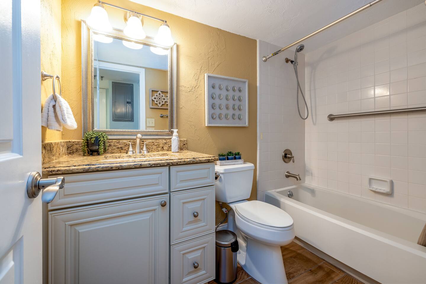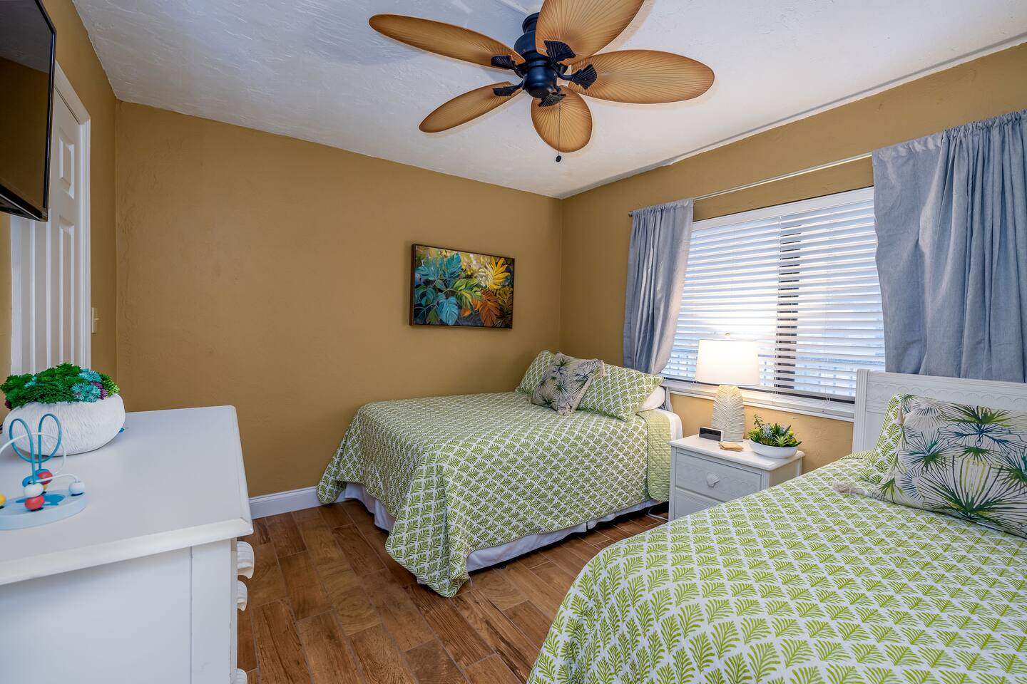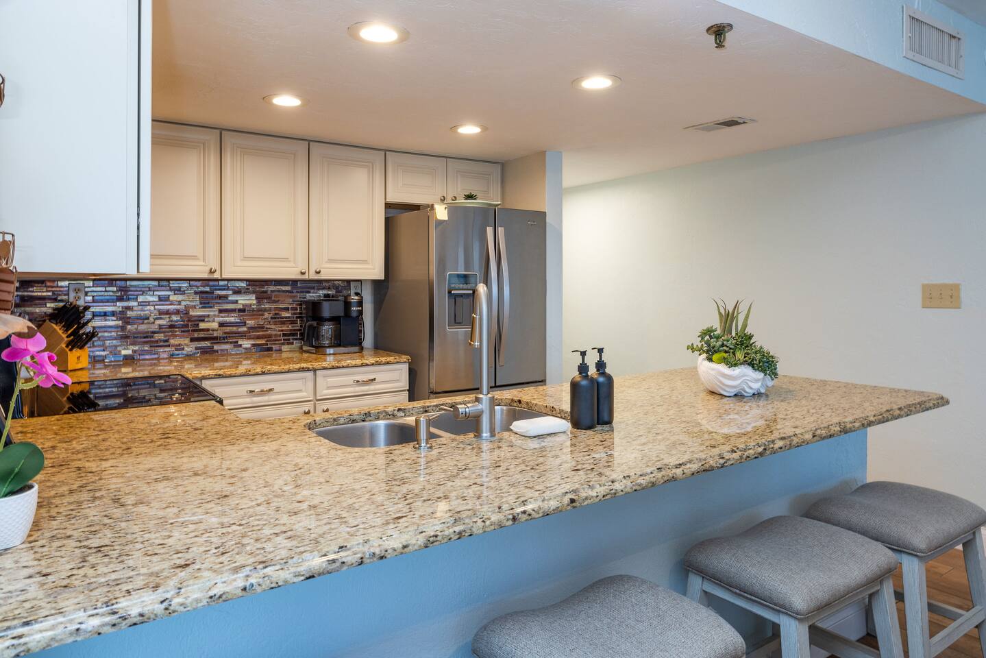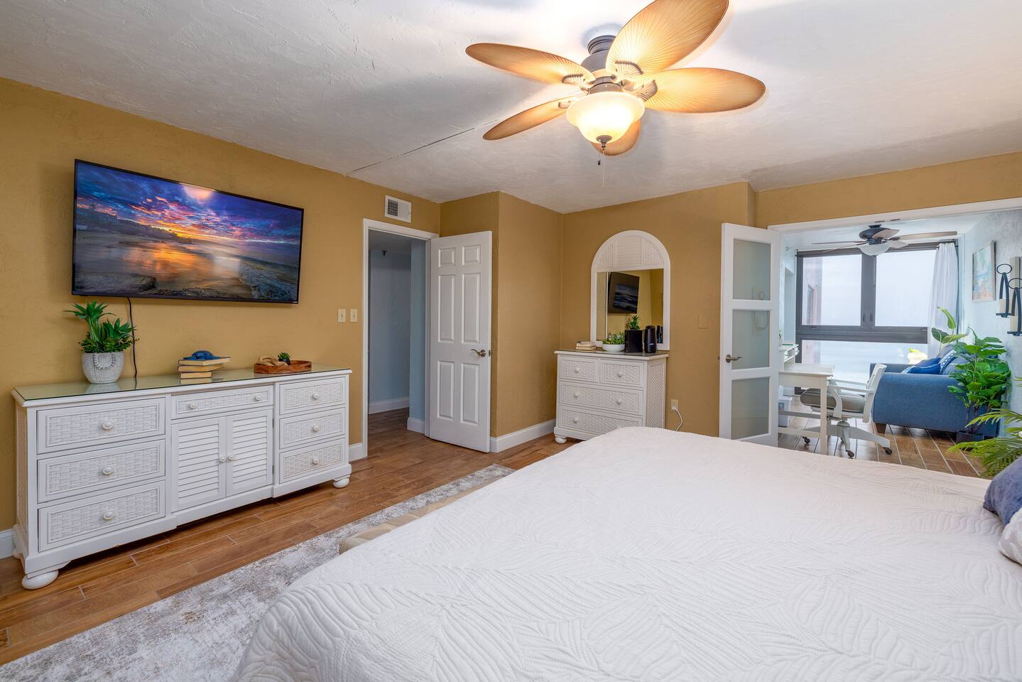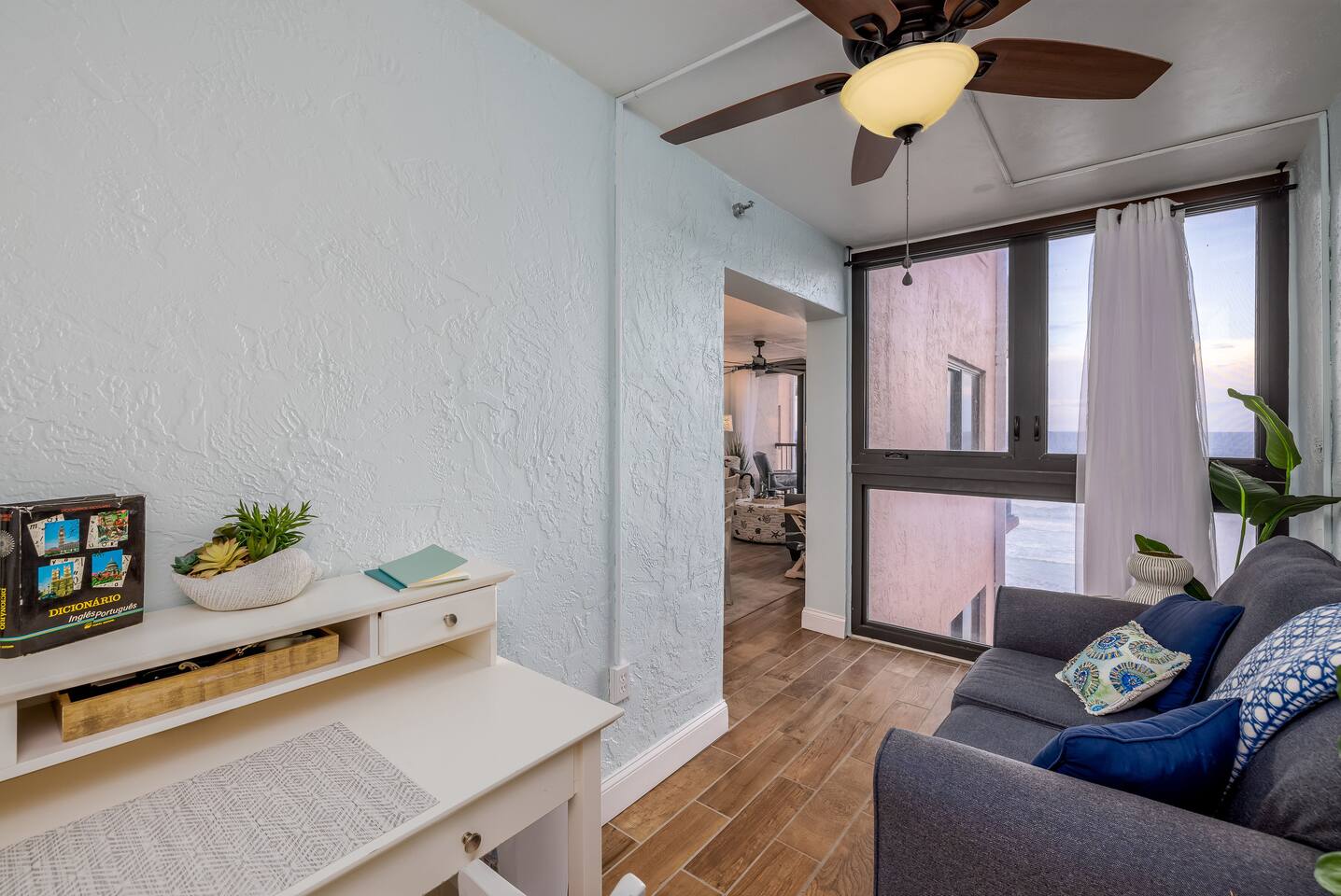 The Space Welcome to your oceanfront escape in New Smyrna Beach — where every day begins with sunrise views over the Atlantic and ends with the sound of gentle waves. Thoughtfully updated, this 2-bedroom, 2-bath condo offers modern comfort in a relaxed coastal setting ideal for families, couples, or small groups. 🌊 Main Living Area ⭐ Open-concept layout with panoramic ocean views ⭐ Plush sofa and Smart TV for cozy movie nights ⭐ Sliding glass doors open to the private beachfront balcony ⭐ Dining area perfect for shared meals or board games 🍳 Kitchen ⭐ Fully equipped with cookware, utensils, and full-size appliances ⭐ Coffee maker, blender, and dishwasher for easy cleanup ⭐ Breakfast bar with ocean views for casual dining 🛏 Primary Bedroom ⭐ King bed with premium linens and ocean views ⭐ Direct balcony access for morning coffee or sunset views 🛏 Primary Bedroom ⭐ King bed with premium linens and ocean views ⭐ Direct balcony access for morning coffee or sunset views ⭐ Ensuite bathroom with walk-in shower and upgraded fixtures ⭐ Smart TV and ample closet storage 🛏 Guest Bedroom ⭐ Full bed plus twin bed — ideal for families or friends ⭐ Smart TV and generous storage space ⭐ Easy access to a full bathroom with grab bars for added safety 🛁 Bathrooms ⭐ Two full bathrooms with fresh towels and toiletries ⭐ Walk-in shower in the master bath ⭐ Hair dryer and starter bath essentials provided 💻 Work & Connectivity ⭐ High-speed WiFi (350+ Mbps) for remote work or streaming ⭐ Dedicated workspace with inspiring ocean backdrop ☀️ Outdoor Space ⭐ Private oceanfront balcony with comfortable seating ⭐ Shared swimming pool and sun loungers ⭐ Direct beach access from the property ⭐ Outdoor grill and picnic area ⭐ Pickleball and tennis courts on-site 🧺 Convenience ⭐ Smart lock entry for seamless check-in ⭐ Free on-site parking ⭐ Washer/dryer in unit ⭐ Beach gear, toys, and chairs provided 📍 Location ⭐ Prime oceanfront spot on New Smyrna Beach ⭐ Minutes to Flagler Avenue’s restaurants, shops, and cafe. ⭐ Close to surf spots, parks, and the Intracoastal Waterway