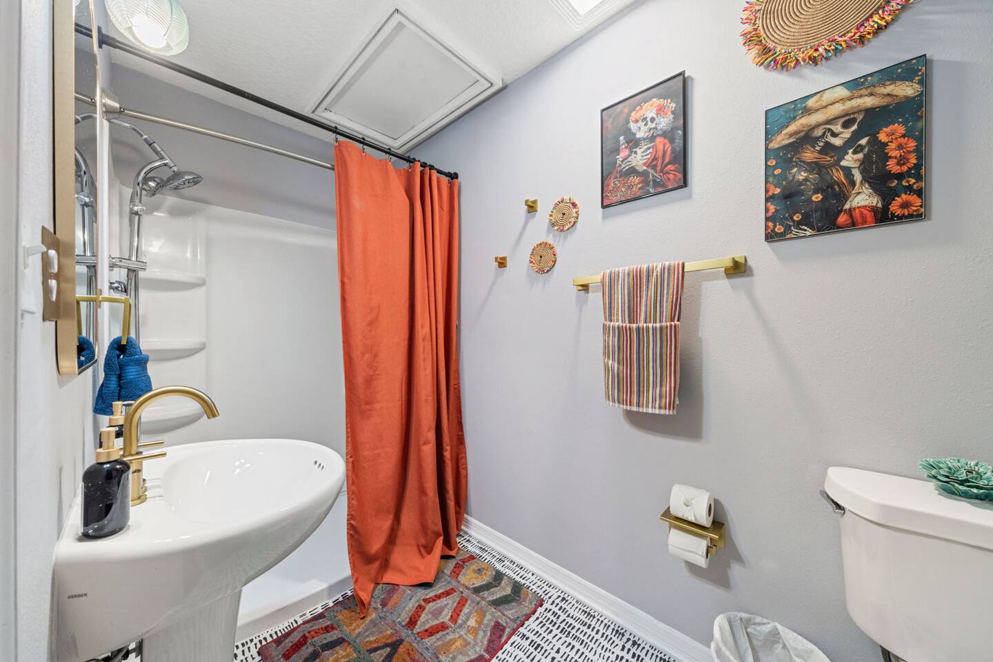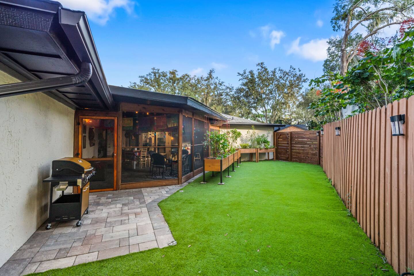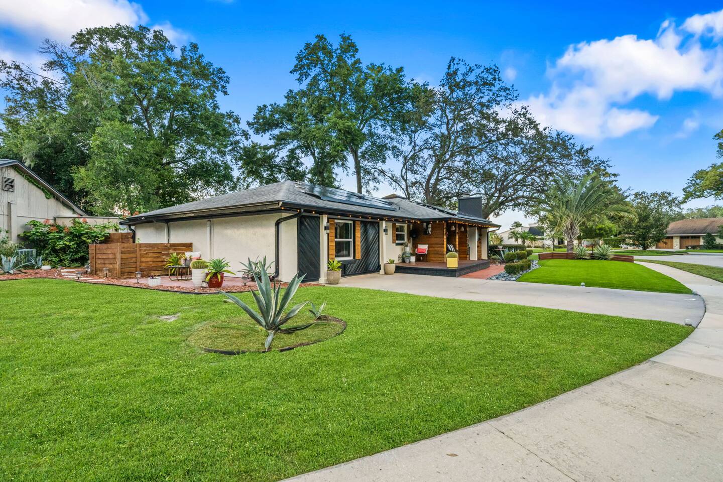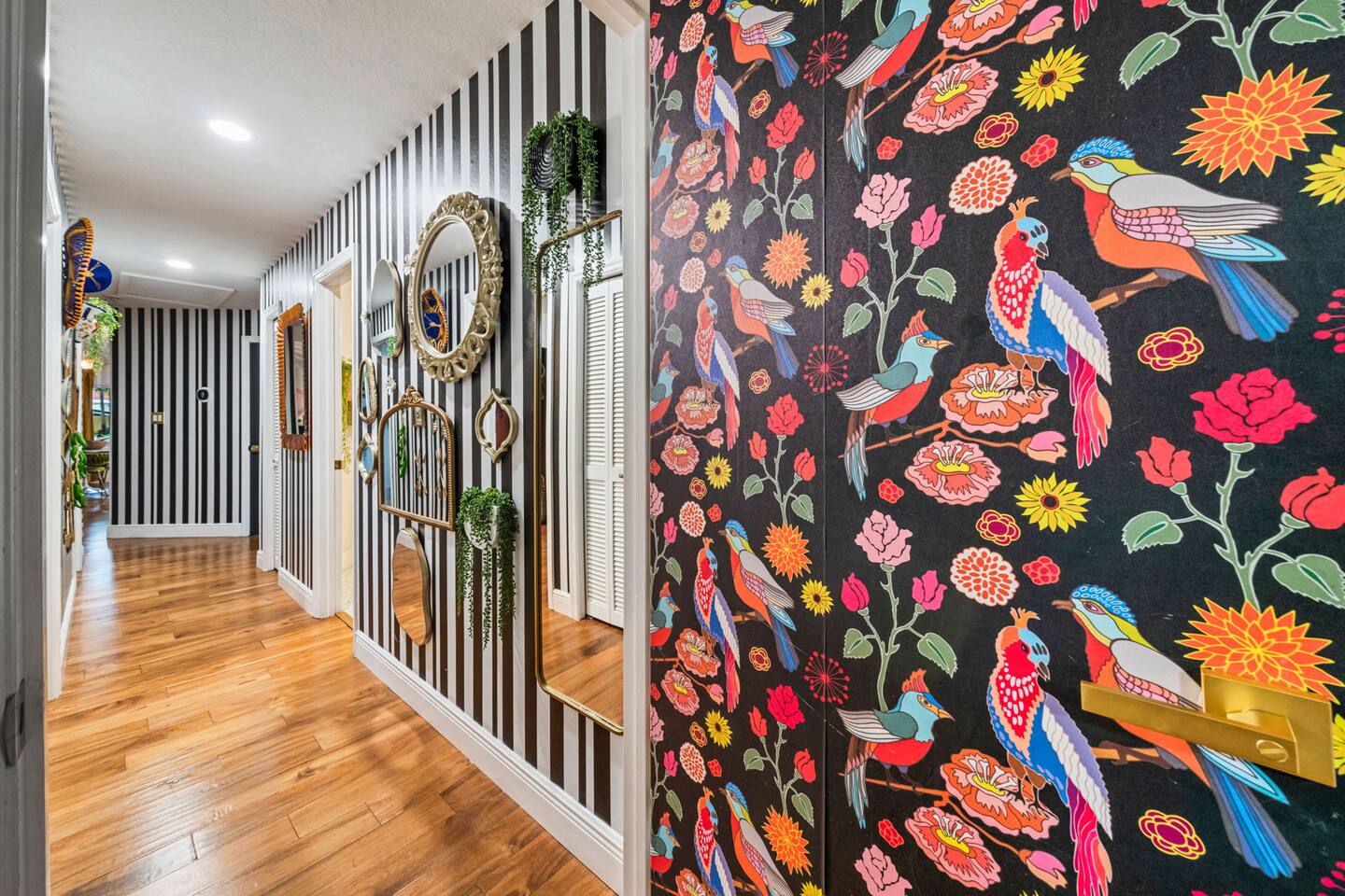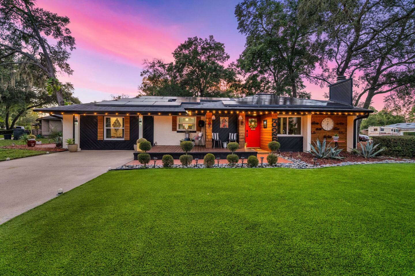 Welcome to La Hacienda, a professionally designed retreat in Central Florida that transports you straight to the heart of Mexico. From vibrant papel picado fluttering above to hand-picked artwork honoring Frida Kahlo and traditional artisans, every corner tells a story of culture and celebration. This six-bedroom, three-bath oasis isn’t just a place to sleep—it’s a colorful canvas where families and groups can gather, connect, and create memories surrounded by warmth and artistry. 🛋 Main Living Area Bright, art-filled lounge perfect for movie nights or conversation Large dining table for group meals and celebrations Open layout designed for comfort and connection 🍳 Kitchen & Dining Fully equipped chef’s kitchen with modern appliances Handcrafted accents and vibrant tilework for an authentic touch Outdoor dining under festive papel picado for unforgettable meals 🌿 Outdoor Space Private patio and garden lounge with colorful décor Gathering spots designed for relaxation and celebration Lush greenery for a true hacienda vibe 🛏 Bedrooms & Bathrooms Bedroom 1 – King Suite Spacious master at the far left of the home King bed with plush linens Bedroom 2 – Full Bedroom Located off Bedroom 1 Full bed, cozy setup for two Bedroom 3 – King Suite Master bedroom at the end of the hallway King bed with stylish décor Bedroom 4 – Queen Bedroom Second door to the right in the hallway Queen bed, vibrant and comfortable Bedroom 5 – Full Bedroom First door to the right in the hallway Full bed with fresh linens Bedroom 6 – Twin Bedroom First door to the left in the hallway Two twin beds, perfect for kids or friends 🛁 Bathrooms (3) Three well-appointed bathrooms with modern finishes. Fresh towels, toiletries, and essentials included 🎨 Design & Atmosphere Professionally designed interiors inspired by Mexican culture Homage to Frida Kahlo and traditional artistry Every detail crafted to make your stay inspiring and memorable 📍 Location Nestled in a quiet neighborhood of Central Florida Easy access to Orlando attractions, Disney World, stunning beaches, Universal Studios. Close to local dining and cultural experiences 💡 Why Book La Hacienda is more than a stay, it’s an experience. Perfect for group getaways, family gatherings, or unique celebrations, it blends vibrant design with modern comfort to create a one-of-a-kind retreat. Book now and make unforgettable memories in a home that tells a story.