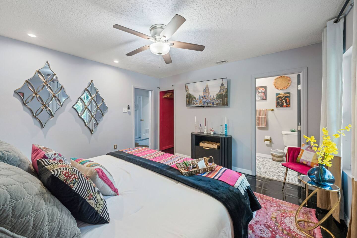 Stay in one of it's kind professionally designed 6BR, 3BA retreat. Every room bursts with vibrant color, curated décor, and unique details that set this home apart. This is an experience, not just another rental property! Perfect for Families and groups. Location! 🛏️ 6 bedrooms, 3 bathrooms 🎨 Professionally designed Mexican-themed décor 🎉 Festive Outdoor patio space 🍳 Fully equipped kitchen with group-friendly setup 📶 High-speed WiFi 🚗 Minutes to Disney World and Universal Studios!