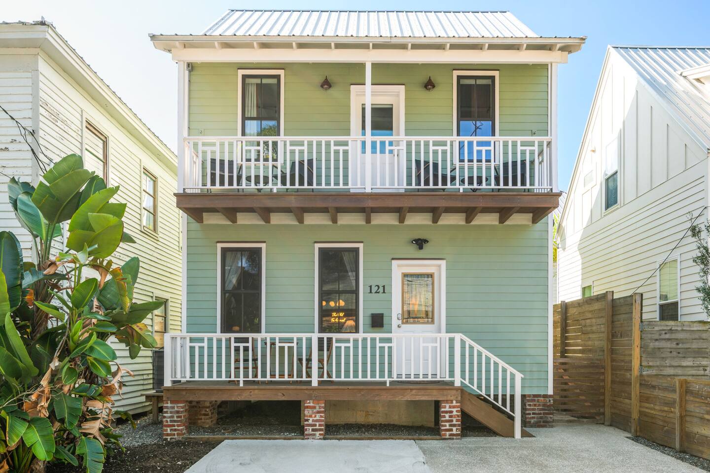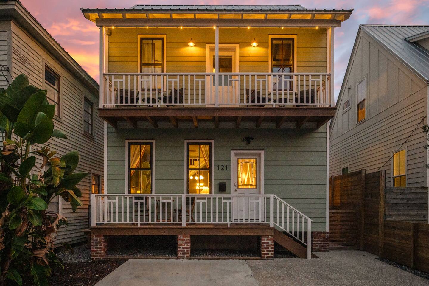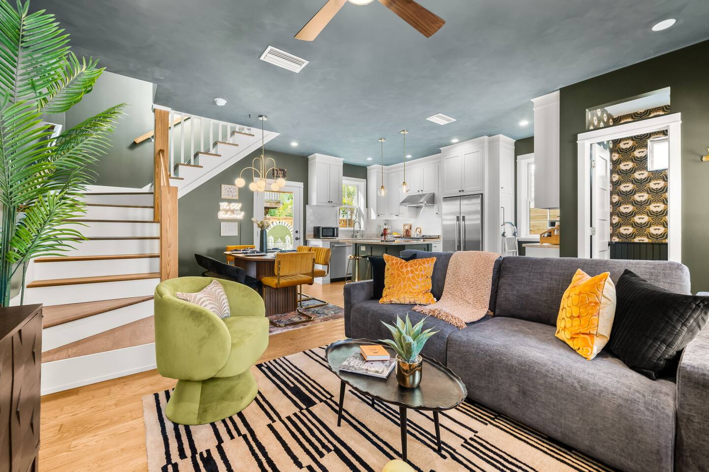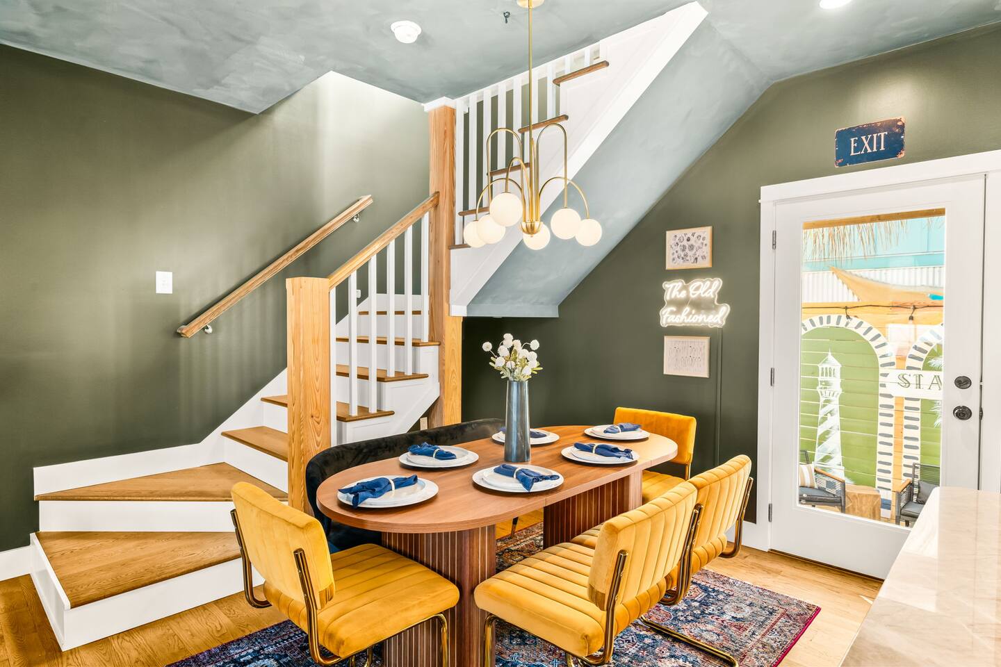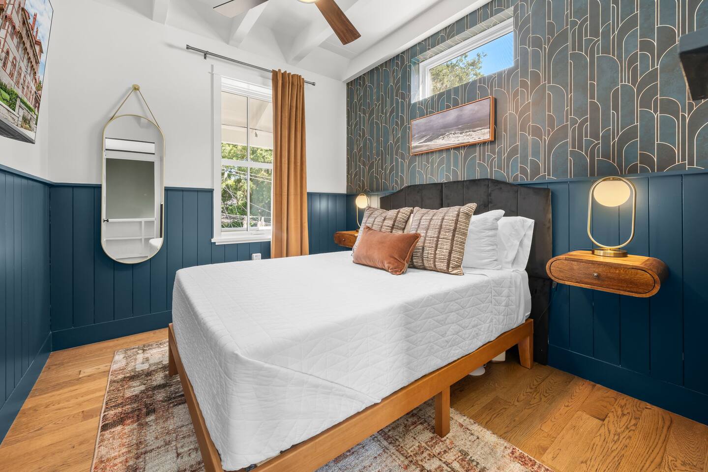 Welcome to The Old Fashioned! Step inside this professionally designed home where modern luxury meets historic St. Augustine charm. Once you’ve explored cobblestone streets and centuries-old landmarks, return to your private Caldera spa hot tub and let stress melt away. Sleep soundly on plush beds, cook in the chef’s kitchen, then gather around the propane fire pit or relax on the spacious back patio under glowing string lights. Just a 5-minute bike ride or 15-minute walk takes you to downtown. Book your stay and enjoy a speakeasy-style blend of history and luxury at The Old Fashioned. 🍸 Entertainment ⭐ 65” HD Smart TV in living room + 55” Smart TVs in each bedroom ⭐ Board games for classic family fun ⭐ Beach chairs ready for your coastal adventures ⭐ Fire pit for cozy evening conversations 🗝️ Work & Connectivity ⭐ Dedicated workspace for remote work ⭐ High-speed Wi-Fi keeps you connected 🥃 Convenience ⭐ Pet-friendly — bring your furry friend ⭐ Driveway parking for two cars ⭐ Full-size washer/dryer with detergent ⭐ Stocked extras: olive oil, spices, coffee, tea, creamers & sweeteners ⭐ Welcome basket with snacks after travel ⭐ Keyless entry for seamless check-in 🎩 Back Patio & Outdoor Oasis ⭐ Luxury Caldera hot tub for evening soaks ⭐ Plenty of seating for cocktails & conversation ⭐ Custom hand-painted mural for Insta-worthy photos ⭐ Propane fire pit for stories under the stars ⭐ String lights for that magical speakeasy glow 🕯️ Main Living Area ⭐ 65” Smart TV for movie nights ⭐ Fully stocked chef’s kitchen with modern tools ⭐ Professionally curated speakeasy-inspired décor ⭐ Dining for six + island bar seating for two 🛏️ Bedrooms ⭐ Plush beds, hotel-quality linens & 55” TVs in every room Primary Suite: King bed, desk, Smart TV Bedroom 2: Queen bed, professionally designed décor, Smart TV Living Room: Sleeper sofa for additional guests 🚿 Bathrooms ⭐ Stocked with luxury toiletries, plush towels & hair dryer Bathroom 1 (Upstairs): Shower/tub combo, vanity, toilet Half Bath (Downstairs): Vanity & toilet Why Book The Old Fashioned? More than just a rental, this home is a boutique-speakeasy escape in the heart of St. Augustine. Every detail was professionally designed — from curated décor to chef-worthy kitchen — blending historic charm and modern comfort. Sip cocktails by the fire pit, snap photos in stylish rooms, or unwind in the hot tub after exploring. Perfect for romantic escapes, family getaways, or friends’ weekends, The Old Fashioned turns every moment into a memory. 📍 Location (Lincolnville) ⭐ 0.5 mi – St. George Street ⭐ 0.9 mi – Flagler College ⭐ 1.0 mi – Bridge of Lions ⭐ 1.1 mi – Castillo de San Marcos ⭐ 4.8 mi – Vilano Beach ⭐ 5.4 mi – St. Augustine Beach ⭐ 3.3 mi – Flagler Hospital ⭐ 3.2 mi – St. Augustine Amphitheatre 🥂 Book Your Stay Don’t just visit St. Augustine — experience it in style. Book The Old Fashioned today and discover the perfect blend of history, speakeasy flair, and luxury living.