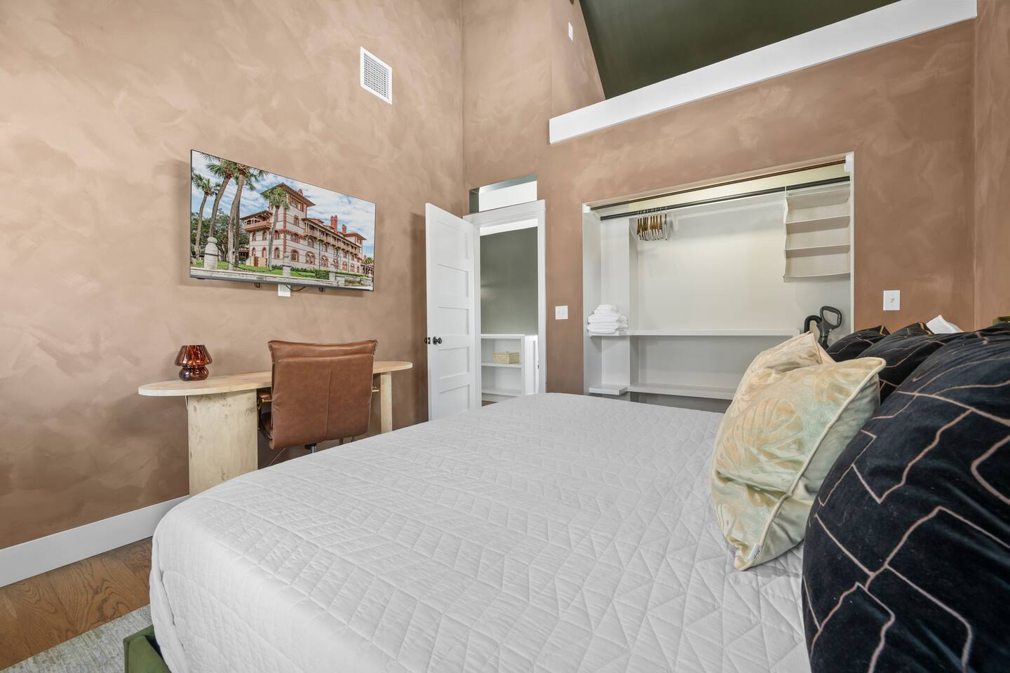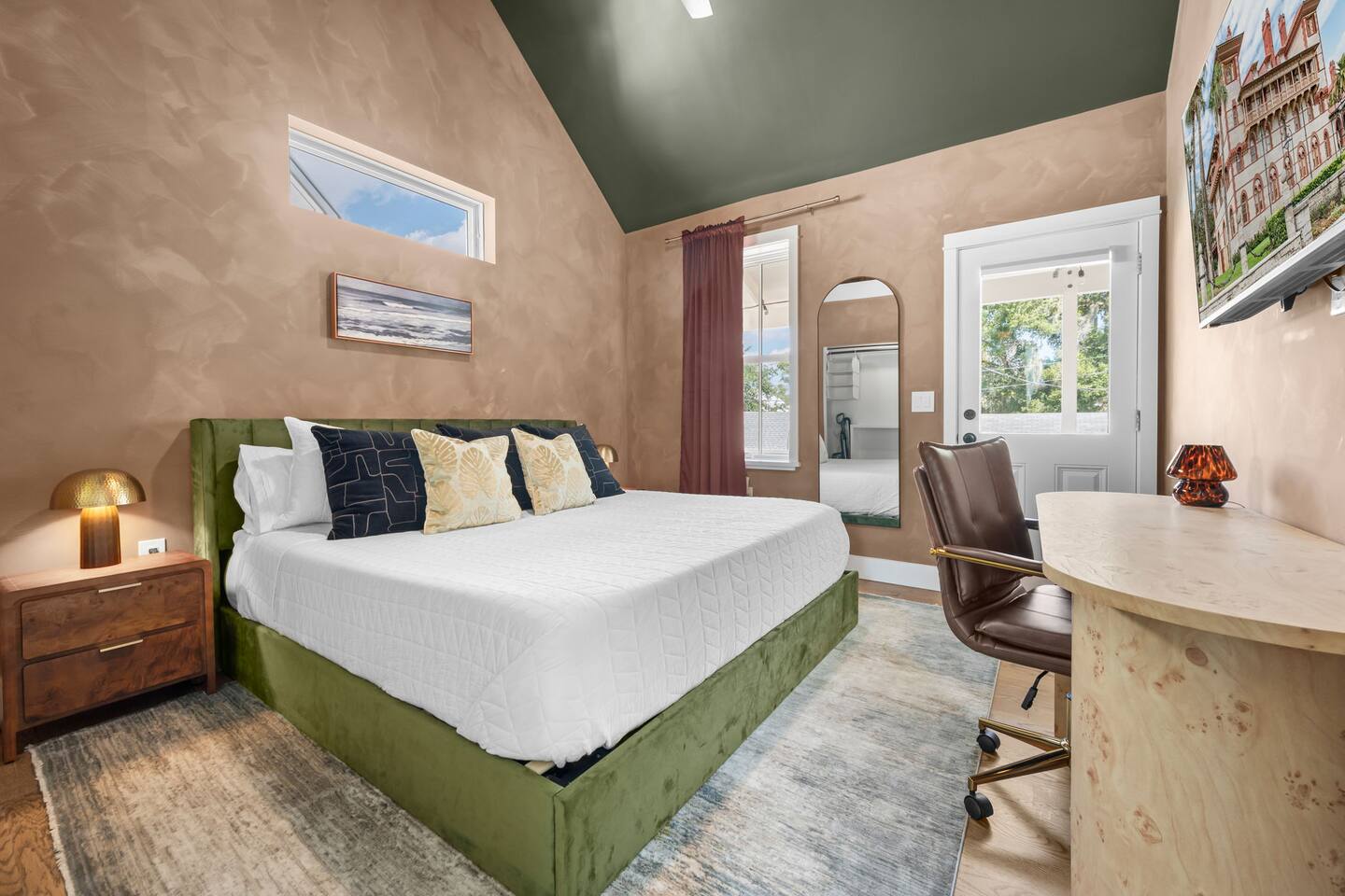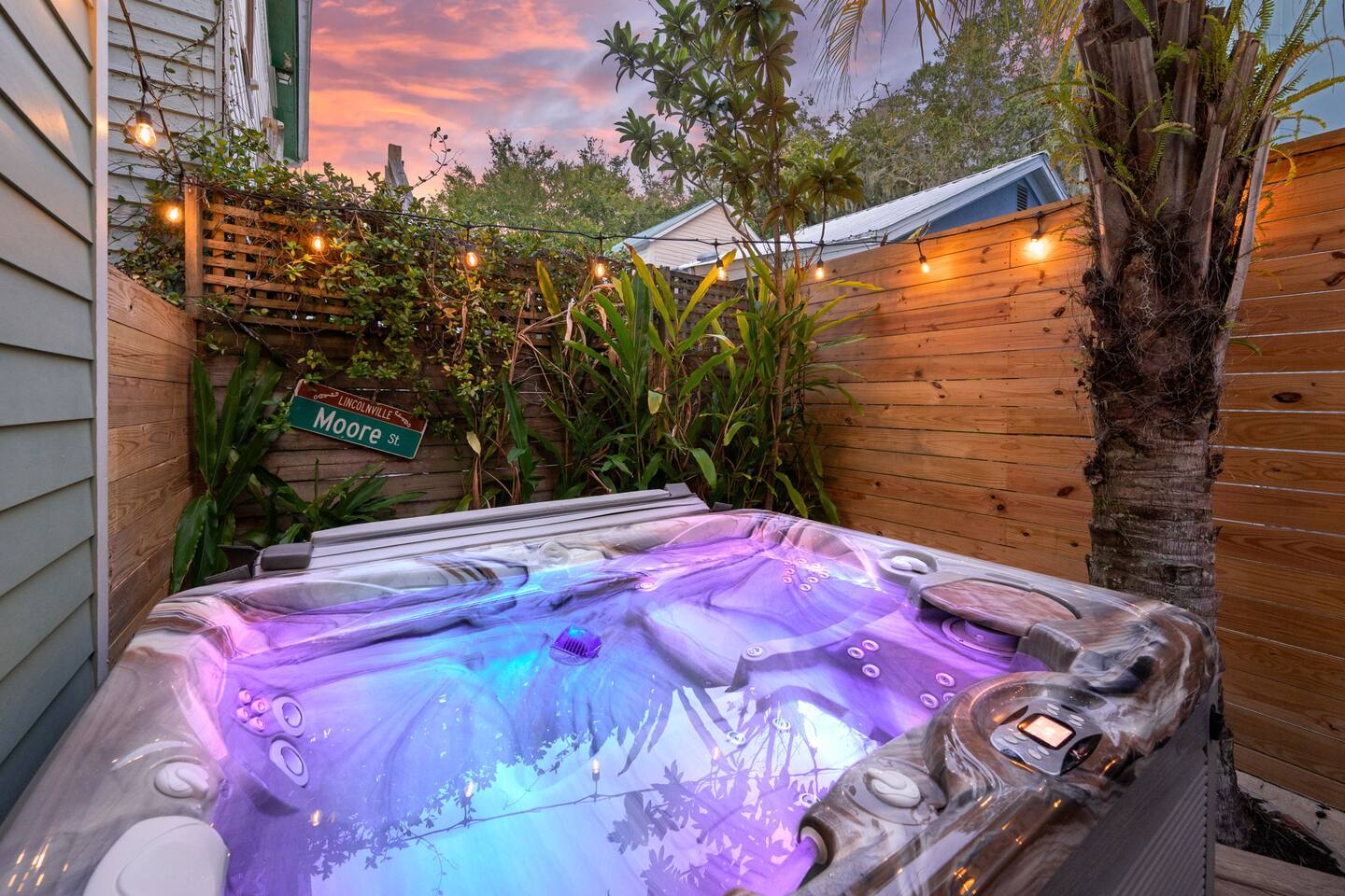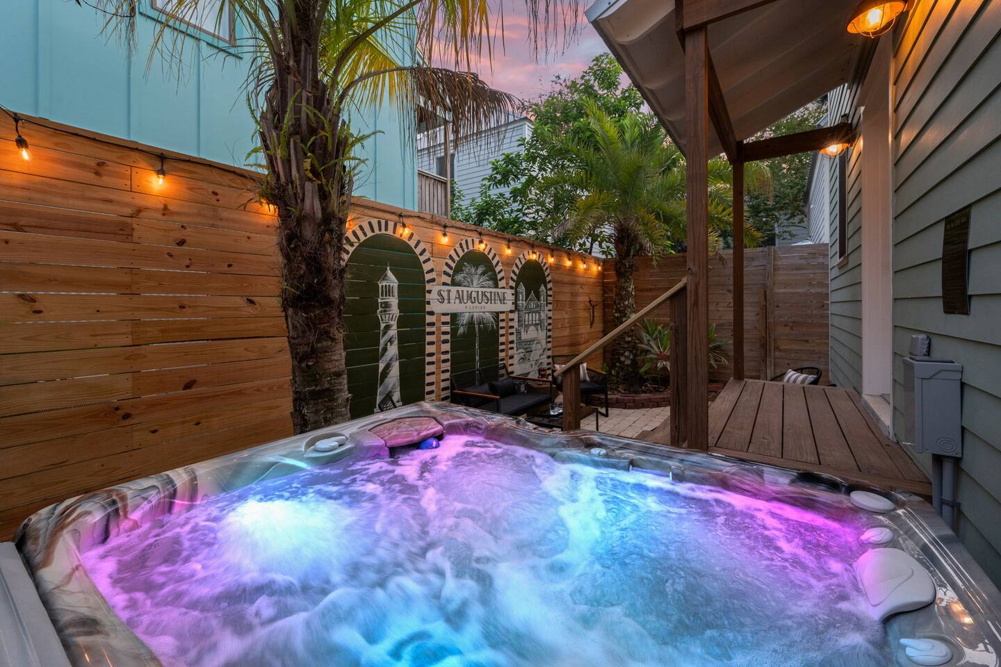 Stay steps from an Old Town Trolley stop, with effortless access to St Augustine’s historic charm. This designer retreat blends modern luxury, perfect for relaxing evenings, productive workdays, and exploring downtown just minutes away. ⭐️ High End Caldera Spa ⭐️ Propane Fire Pit ⭐️ Dedicated workspace and reliable top-speed internet ⭐️ King Bed ⭐️ Pet-friendly ⭐️ 5-minute bike ride/10-15 minute walk to downtown ⭐️ Parking for up to 2 cars ⭐️ Fully stocked gourmet kitchen ⭐️ High Speed Internet