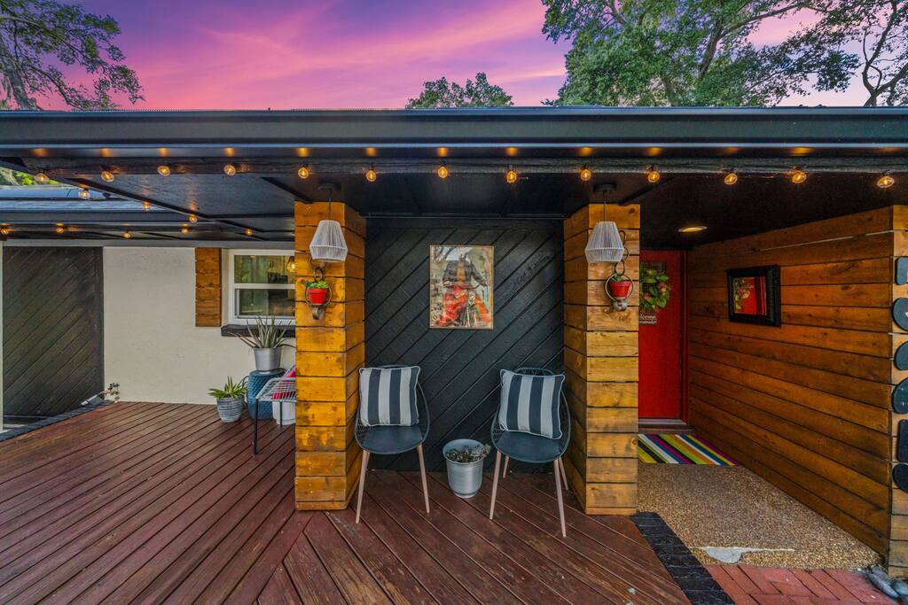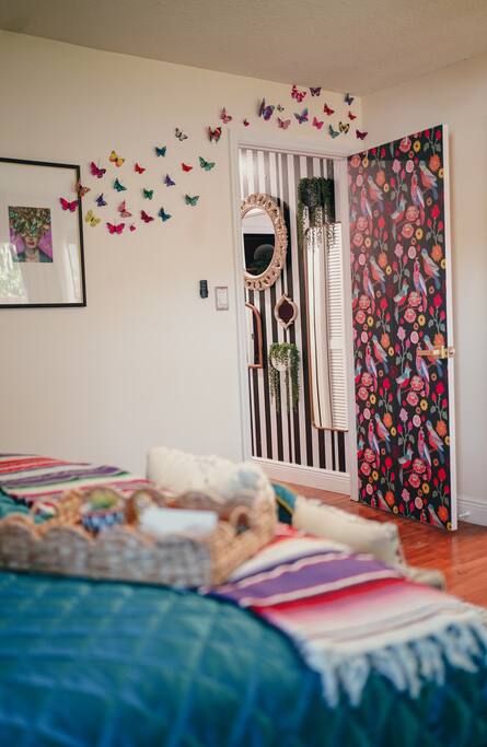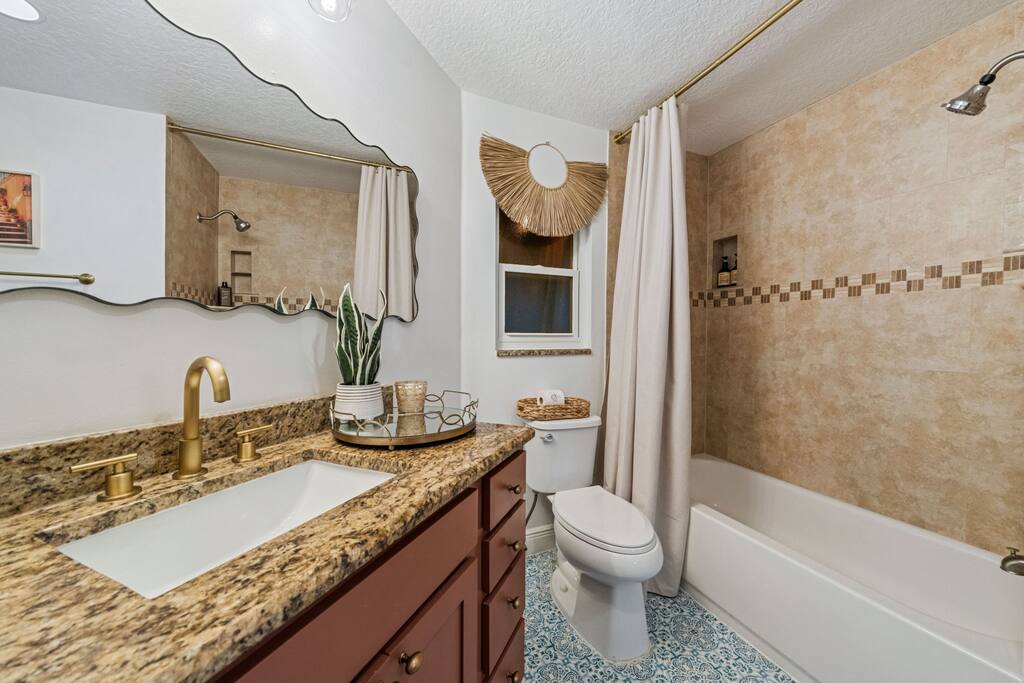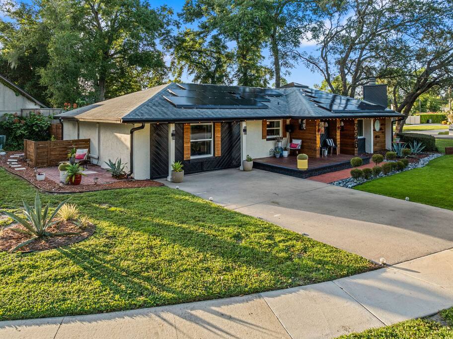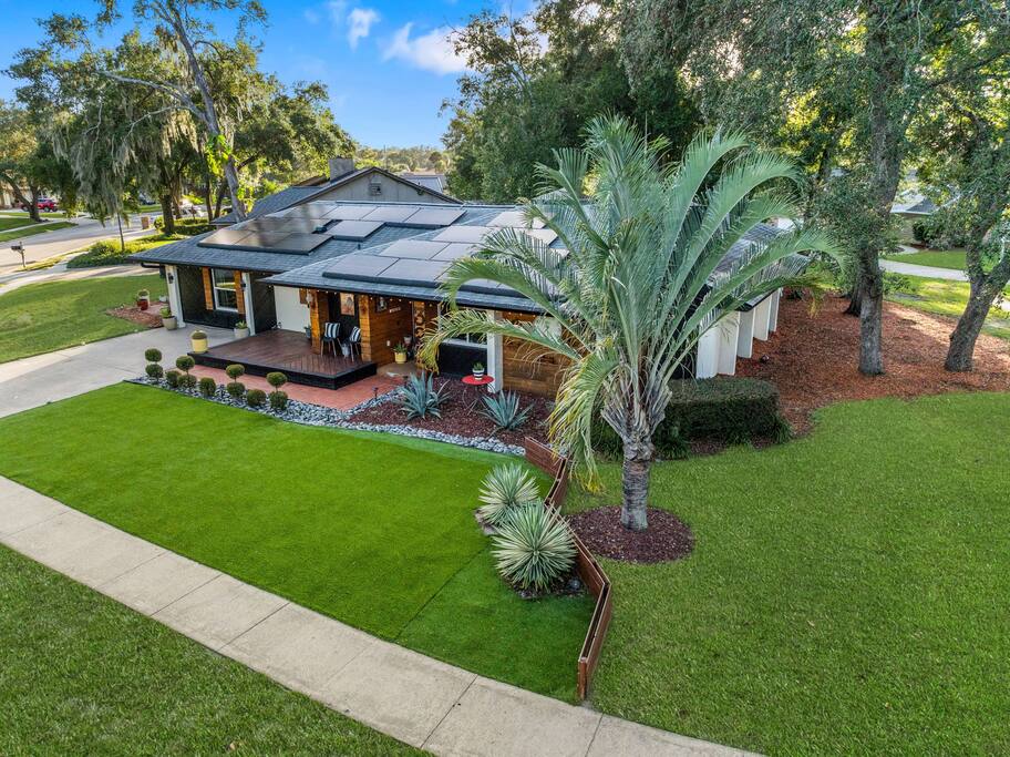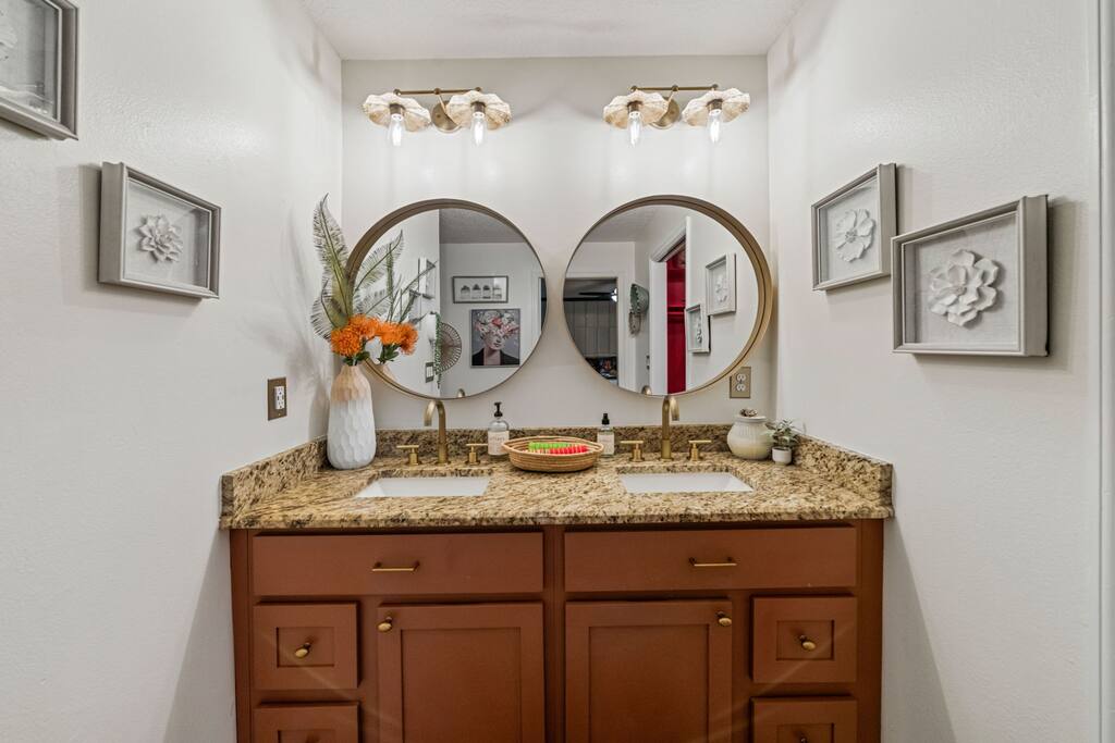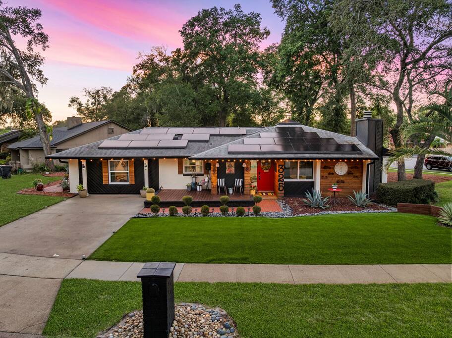 Welcome to La Hacienda, a professionally designed retreat in Central Florida that transports you straight to the heart of Mexico. From vibrant papel picado fluttering above to hand-picked artwork honoring Frida Kahlo and traditional artisans, every corner tells a story of culture and celebration. This six-bedroom, three-bath oasis isn’t just a place to sleep—it’s a colorful canvas where families and groups can gather, connect, and create memories surrounded by warmth and artistry. 🛋 Main Living Area Bright, art-filled lounge perfect for movie nights or conversation Large dining table for group meals and celebrations Open layout designed for comfort and connection 🍳 Kitchen & Dining Fully equipped chef’s kitchen with modern appliances Handcrafted accents and vibrant tilework for an authentic touch Outdoor dining under festive papel picado for unforgettable meals 🌿 Outdoor Space Private patio and garden lounge with colorful décor Gathering spots designed for relaxation and celebration Lush greenery for a true hacienda vibe 🛏 Bedrooms & Bathrooms Bedroom 1 – King Suite Spacious master at the far left of the home King bed with plush linens Bedroom 2 – Full Bedroom Located off Bedroom 1 Full bed, cozy setup for two Bedroom 3 – King Suite Master bedroom at the end of the hallway King bed with stylish décor Bedroom 4 – Queen Bedroom Second door to the right in the hallway Queen bed, vibrant and comfortable Bedroom 5 – Full Bedroom First door to the right in the hallway Full bed with fresh linens Bedroom 6 – Twin Bedroom First door to the left in the hallway Two twin beds, perfect for kids or friends 🛁 Bathrooms (3) Three well-appointed bathrooms with modern finishes. Fresh towels, toiletries, and essentials included 🎨 Design & Atmosphere Professionally designed interiors inspired by Mexican culture Homage to Frida Kahlo and traditional artistry Every detail crafted to make your stay inspiring and memorable 📍 Location Nestled in a quiet neighborhood of Central Florida Easy access to Orlando attractions, Disney World, stunning beaches, Universal Studios. Close to local dining and cultural experiences 💡 Why Book La Hacienda is more than a stay, it’s an experience. Perfect for group getaways, family gatherings, or unique celebrations, it blends vibrant design with modern comfort to create a one-of-a-kind retreat. Book now and make unforgettable memories in a home that tells a story.