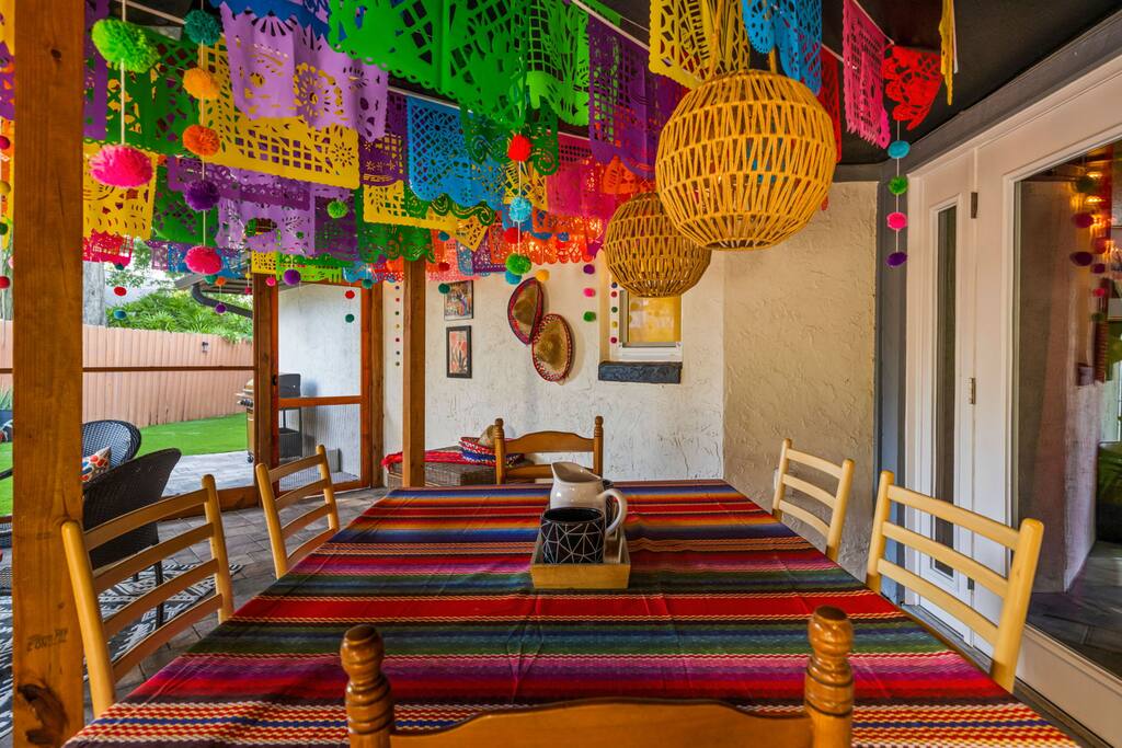 Stay in one of it's kind professionally designed 6BR, 3BA retreat. Every room bursts with vibrant color, curated décor, and unique details that set this home apart. This is an experience, not just another rental property! Perfect for Families and groups. Location! 🛏️ 6 bedrooms, 3 bathrooms 🎨 Professionally designed Mexican-themed décor 🎉 Festive Outdoor patio space 🍳 Fully equipped kitchen with group-friendly setup 📶 High-speed WiFi 🚗 Minutes to Disney World and Universal Studios!